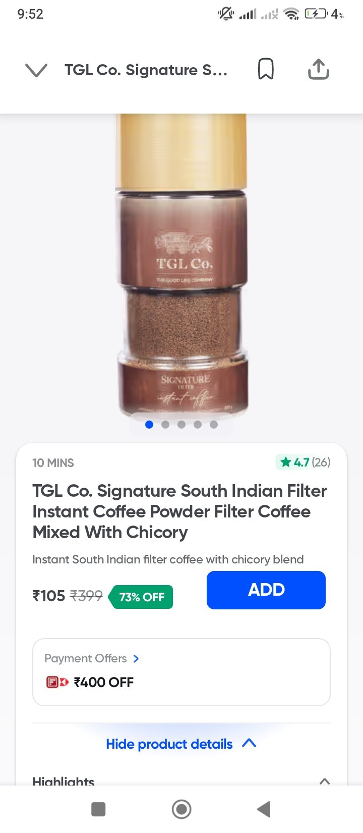 🔥 Deal Alert! 🔥 Get the exquisite TGL Co. Signature South Indian Filter Instant Coffee with Chicory at an amazing 74% discount!