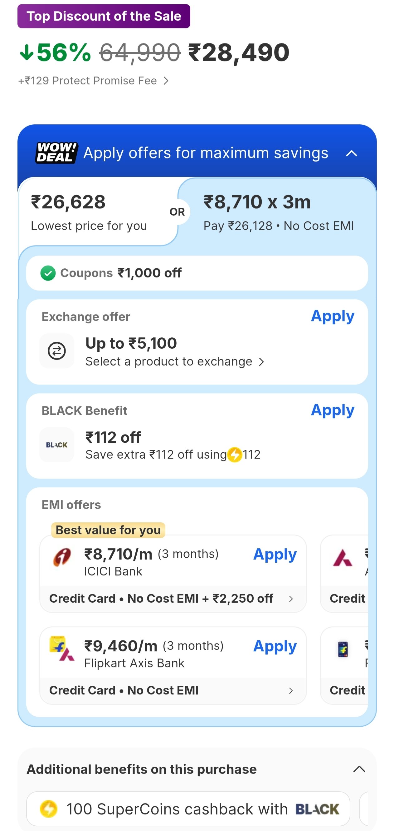 - ICICI/Axis Bank Credit Card Full Payment: Enjoy an instant ₹1750 discount.