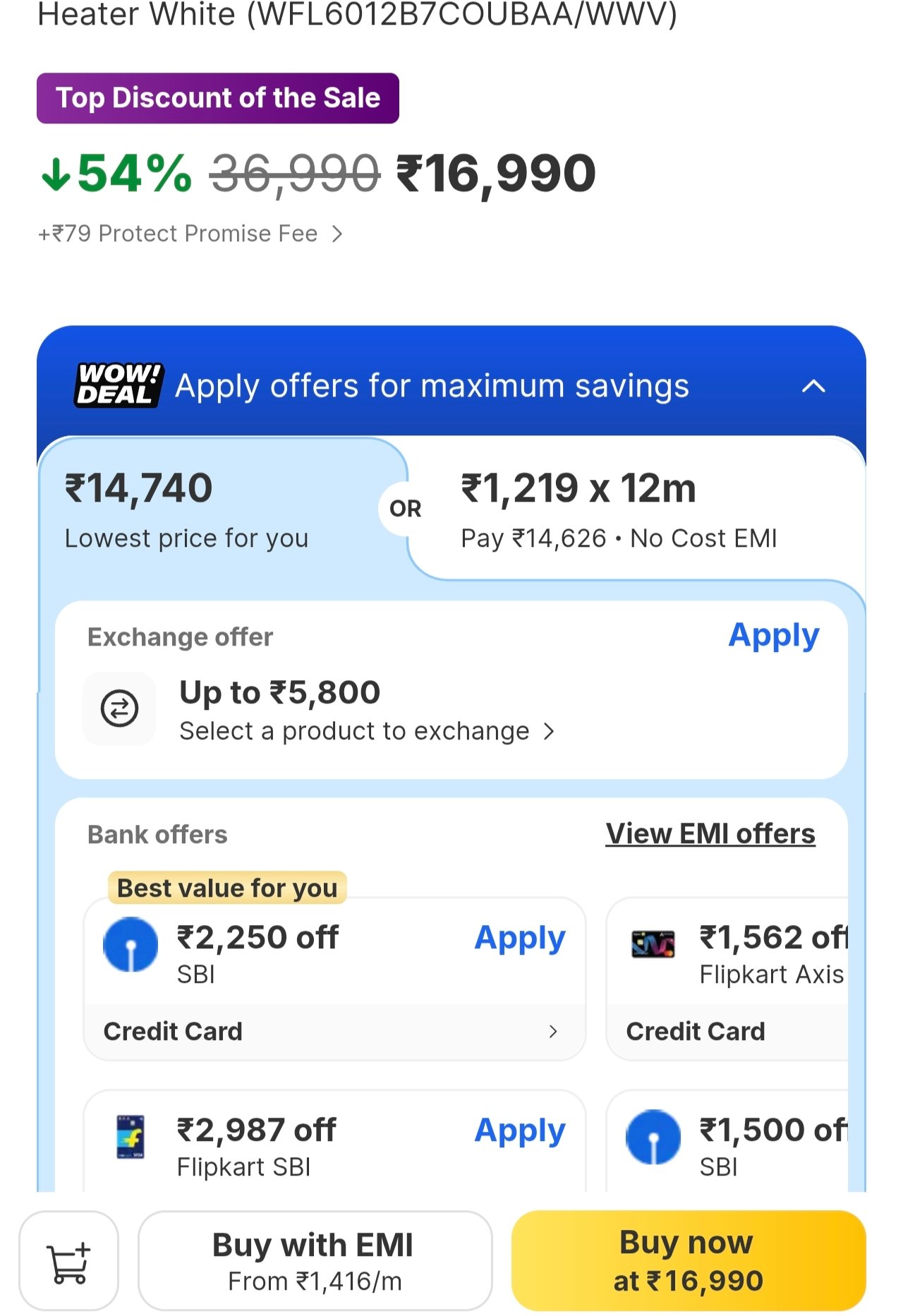 - ₹2987 off with Flipkart Co-Branded SBI Credit Cards