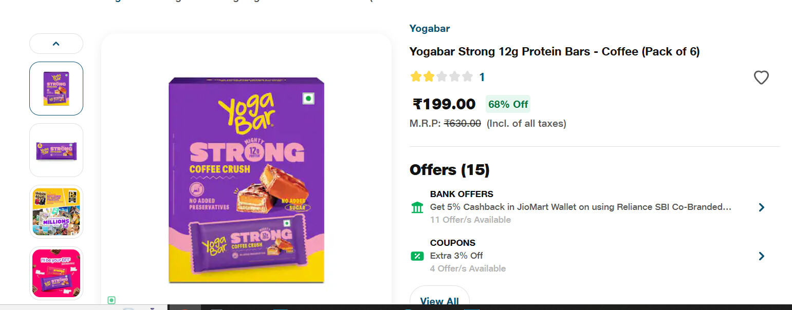 Discover the Yogabar Strong 12g Coffee Protein Bars (Pack of 6), now available for an amazing price of just ₹199!