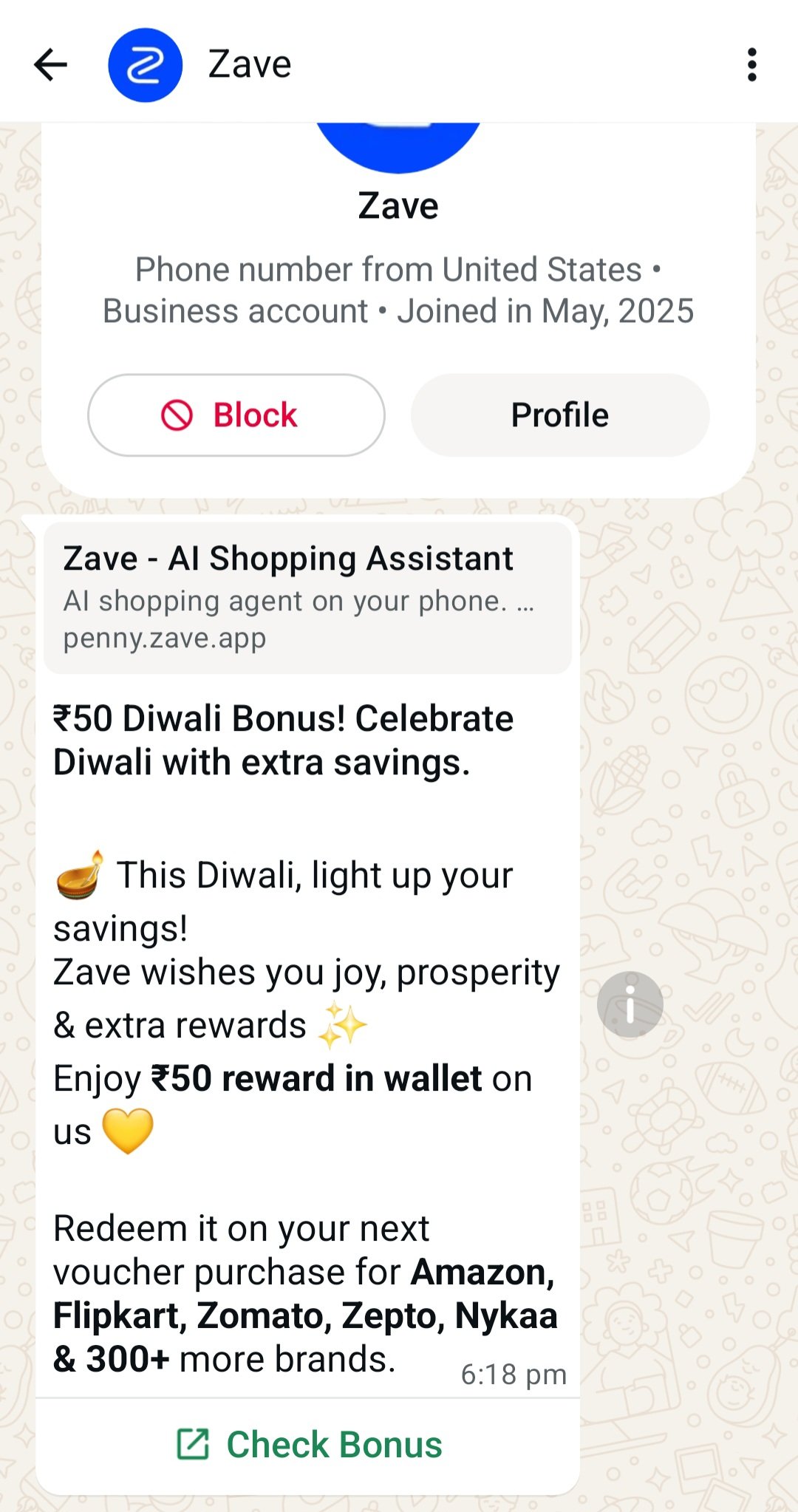 Celebrate Diwali with Zave App and get a bonus of ₹50 directly credited to your wallet!