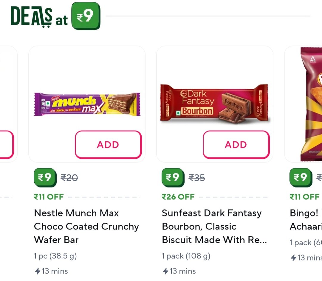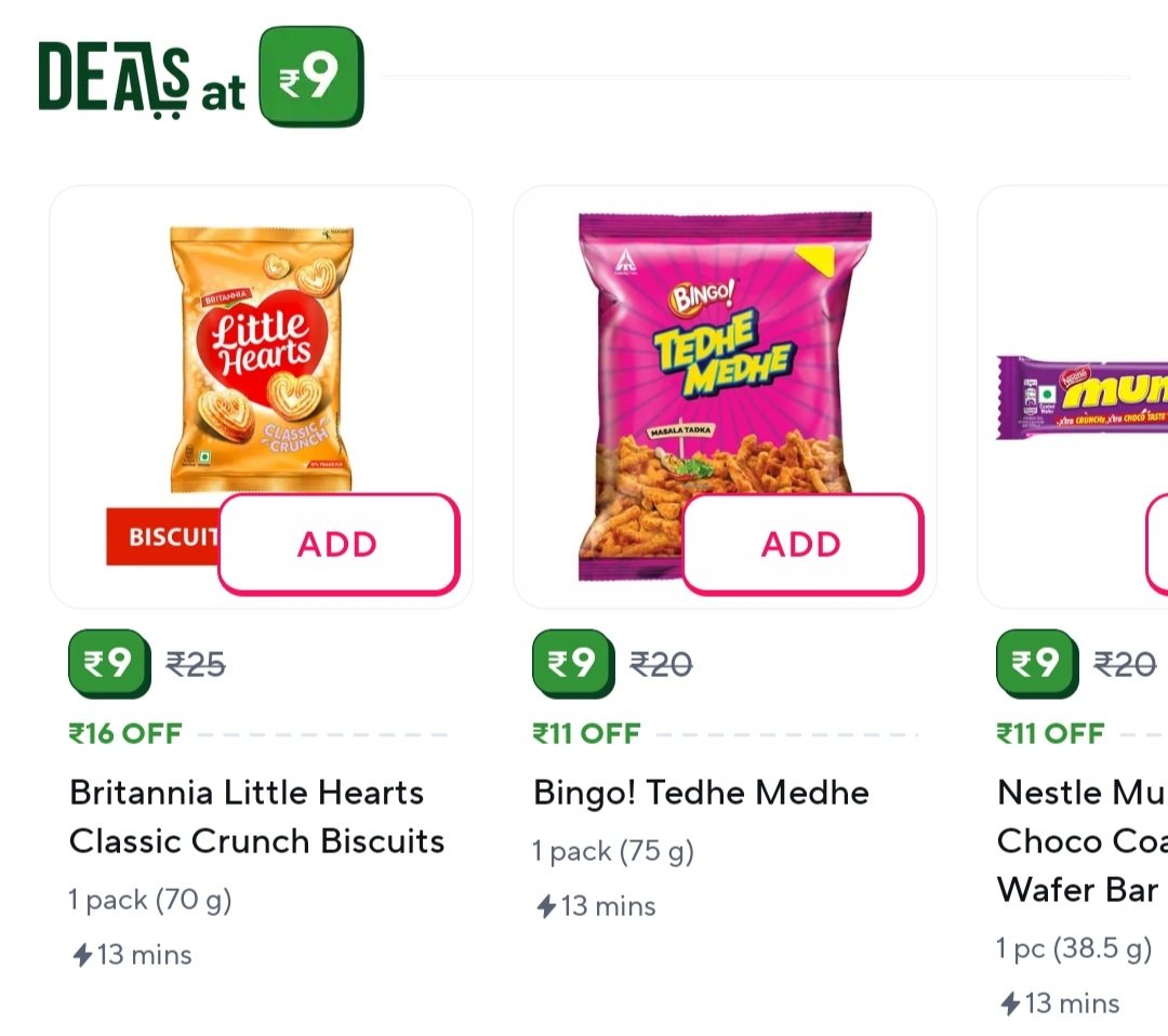 Discover amazing deals on Zepto! Get a wide range of products including biscuits, chips, chocolates, and more, all starting at just ₹9. Enjoy discounts of up to 74% off on popular items. Don’t miss out on these limited-time offers!