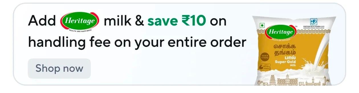 Zepto users in Chennai can now save on handling fees! Simply add Heritage Milk to your order and enjoy free delivery.