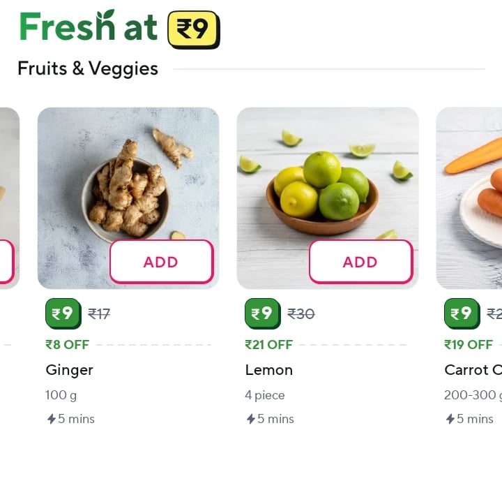 Grab fresh vegetables and fruits from Zepto starting at just ₹9! This amazing offer brings daily essentials to your doorstep at unbeatable prices.