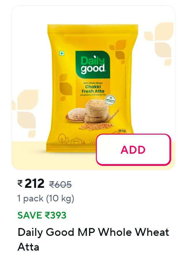 Grab this fantastic deal on Daily Good MP Whole Wheat Atta (10 kg) available exclusively on Zepto!