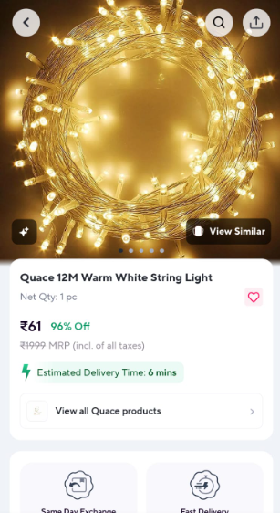 Brighten your space with the Quace 12M Warm White String Light, now available at an incredible discount on Zepto!